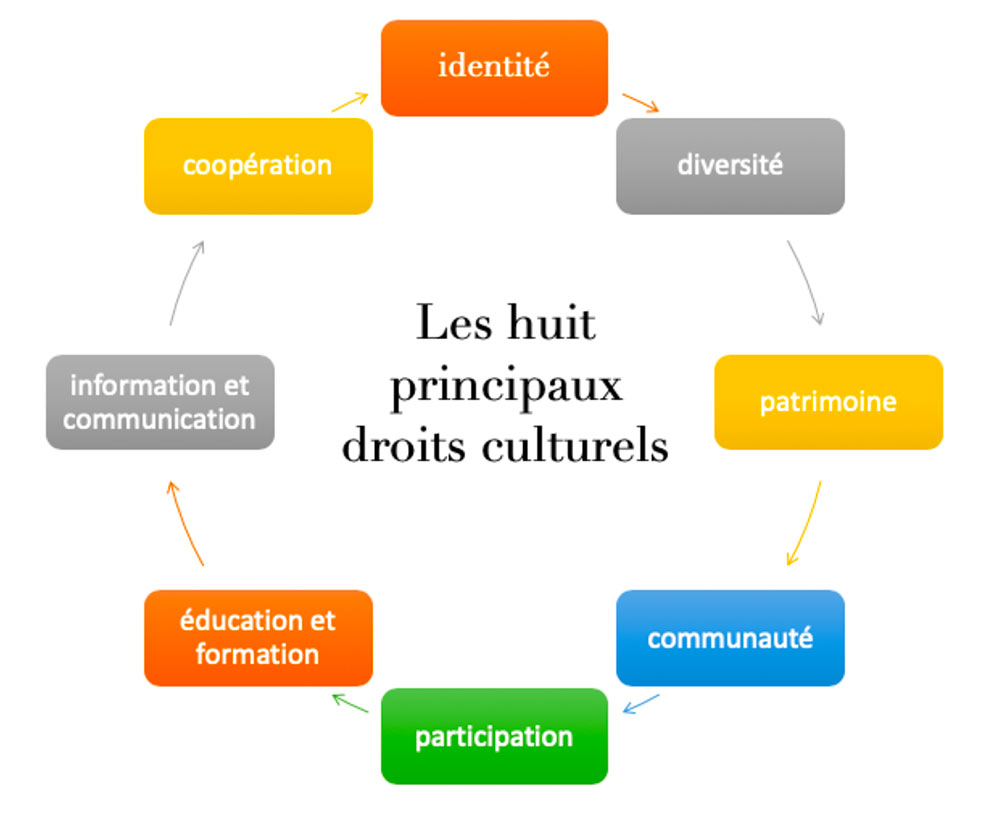 Voici les 8 droits culturels tels qu'inscrits dans la Déclaration de Fribourg et qui sont des Droits Humains fondamentaux :